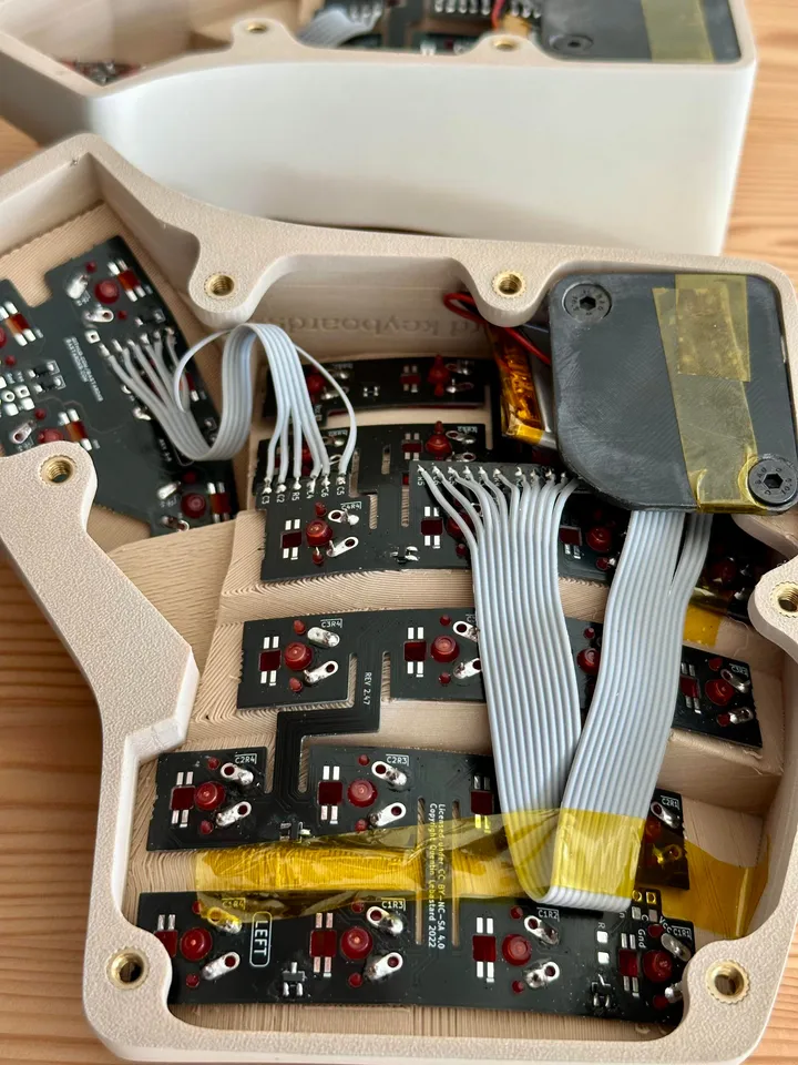 内部のモジュールには「Tenko ark 60 8k PCB module kit」を使用し、スイッチには磁気スイッチである「Gateron magnetic jade max he」を搭載しています。特筆すべき点として、重みのあるセラミック製のキーキャップ(特にスペースバーなど)に合わせて、スイッチのスプリングをより重いものに交換するという、初めてのビルドとは思えない細やかな調整が行われています。