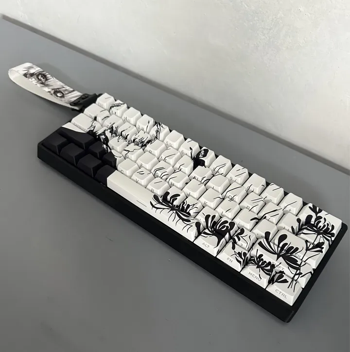 本モデルの最大の特徴は、話題の磁気スイッチである「Akko Cream Yellow Magnetic」が搭載されている点です。磁気スイッチならではのアクチュエーションポイントの柔軟な調整機能と、滑らかで安定した打鍵感が期待できます。キーキャップは購入時に付属しているプレビルドのものがそのまま使用されていますが、辰年をモチーフとした限定デザインがキーボード全体の特別感を美しく際立たせています。