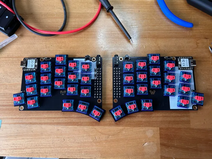 一方で、投稿者はBluetooth接続時のバッテリー寿命についてコミュニティに情報を求めています。製品到着時に基板の電源が「ON」の状態でバッテリーが低下していたとのことですが、MacBookでUSB充電を行った後、ケーブルを抜くとOS上のバッテリー残量表示が著しく減少する現象が発生しているようです。物理的なバッテリーの膨張(膨らみ)は見られないため、100%まで充電した上でのフルテストを予定しつつも、バッテリーの初期不良ではないかと懸念を抱いています。