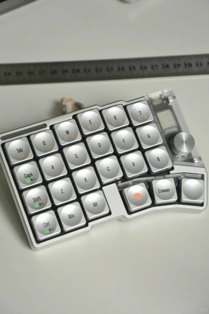 形状は中央が緩やかにくぼんだ設計になっており、指先に心地よくフィットする操作感を実現。ロープロファイル仕様でありながら、立体感のあるビジュアルが特徴です。Cherry MX互換の十字軸に対応しているため、幅広い自作キーボードで使用可能です。