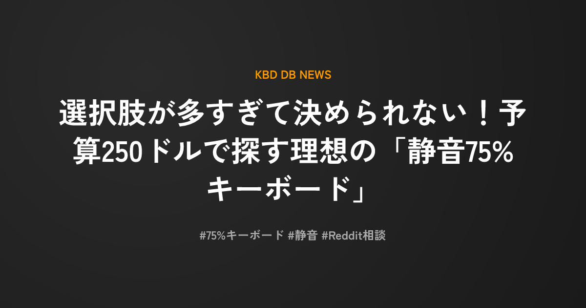 選択肢が多すぎて決められない!予算250ドルで探す理想の「静音75%キーボード」