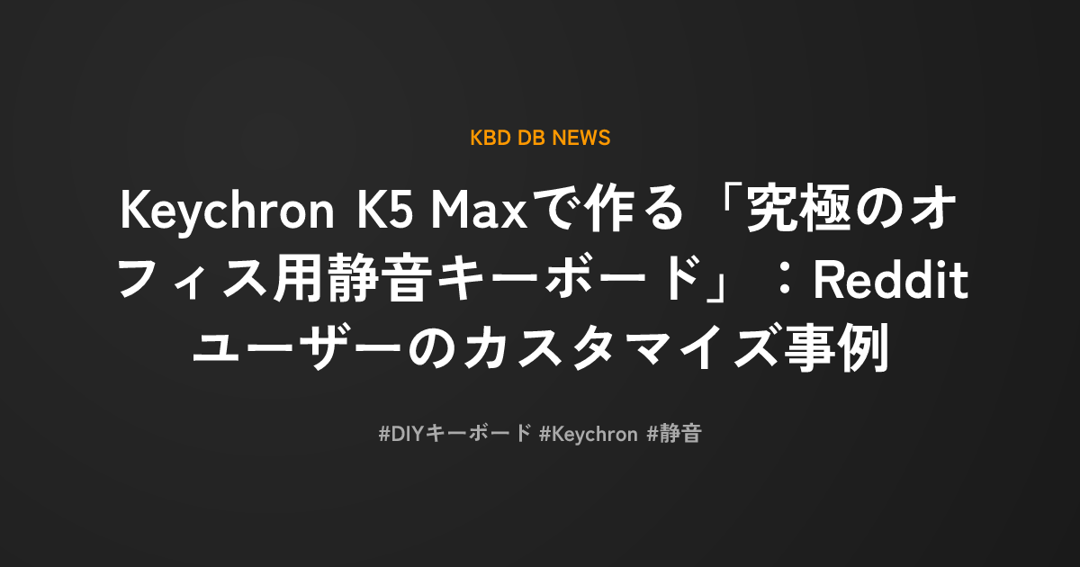 Keychron K5 Maxで作る「究極のオフィス用静音キーボード」:Redditユーザーのカスタマイズ事例