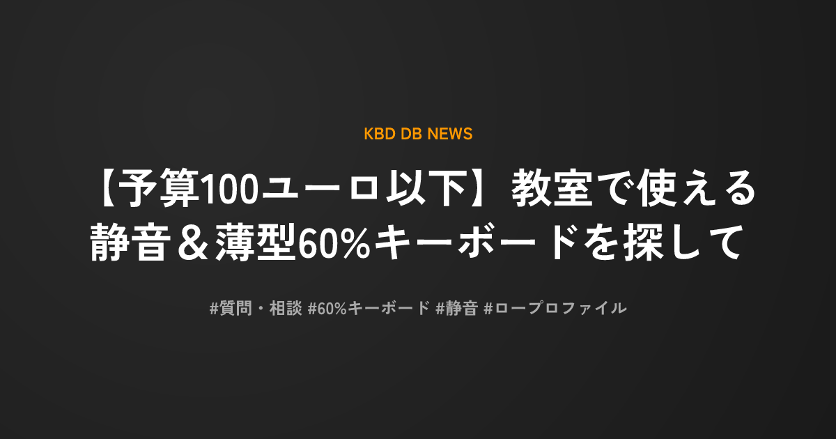 投稿者の主な要望は、カバンからサッと取り出してすぐに使える携帯性と、公共の場でも周囲に迷惑をかけない圧倒的な静音性です。静音仕様のメンブレン方式、あるいは薄型のロープロファイルモデルが検討の対象となっています。