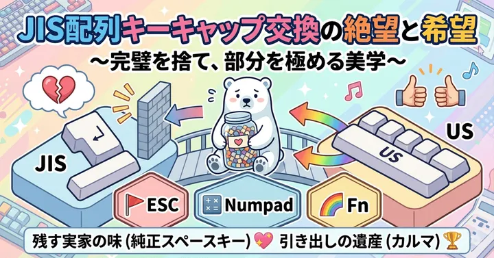注目すべきは、英語配列に日本語記号を組み合わせようと試みた「Bilingual_Girl」の開発エピソードです。OSの言語設定に起因するキーの挙動問題や、基板制作時の失敗、さらにはアクリル製プレートの破損など、自作キーボード設計におけるリアルな苦労が語られています。